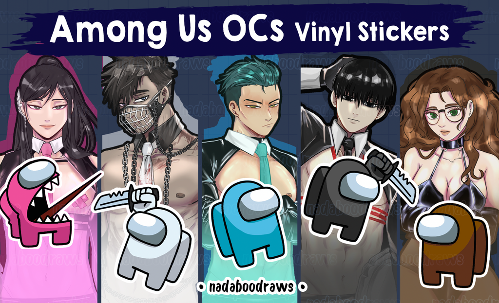 • OCs Approximately: 6.25" - 7.7" tall• Among Us Approximately: 2.5" - 2.8" tall• Gloss Vinyl and Waterproof Sticker